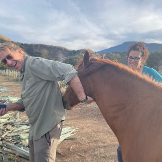 הסוסה בת 20, חלק מהמשפחה, ליוותה אותנו בסיור, היתה ידידותית ביותר ונהנתה מהליטופים שלנו